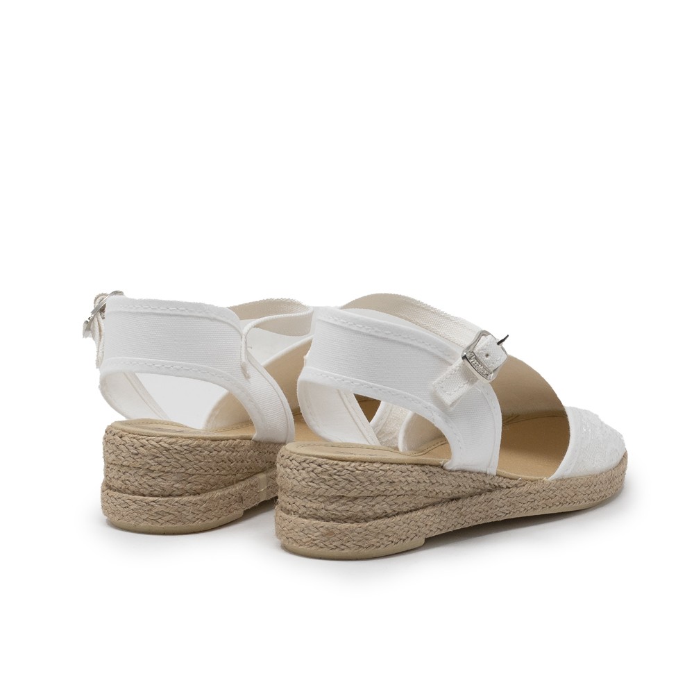 El color blanco de estas alpargatas las hace ideales para combinar con cualquier conjunto, ya sea casual o más formal. Su diseño con encaje en la parte superior le da un toque femenino y delicado que las hace únicas.
