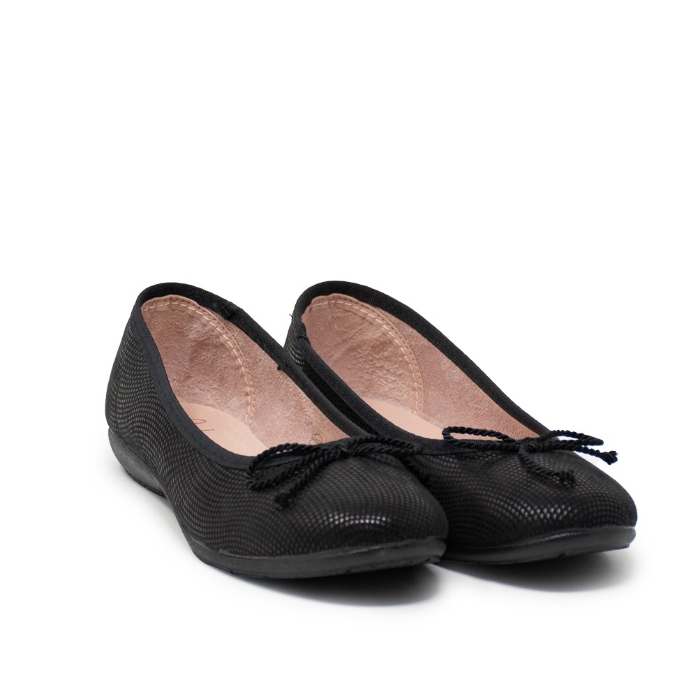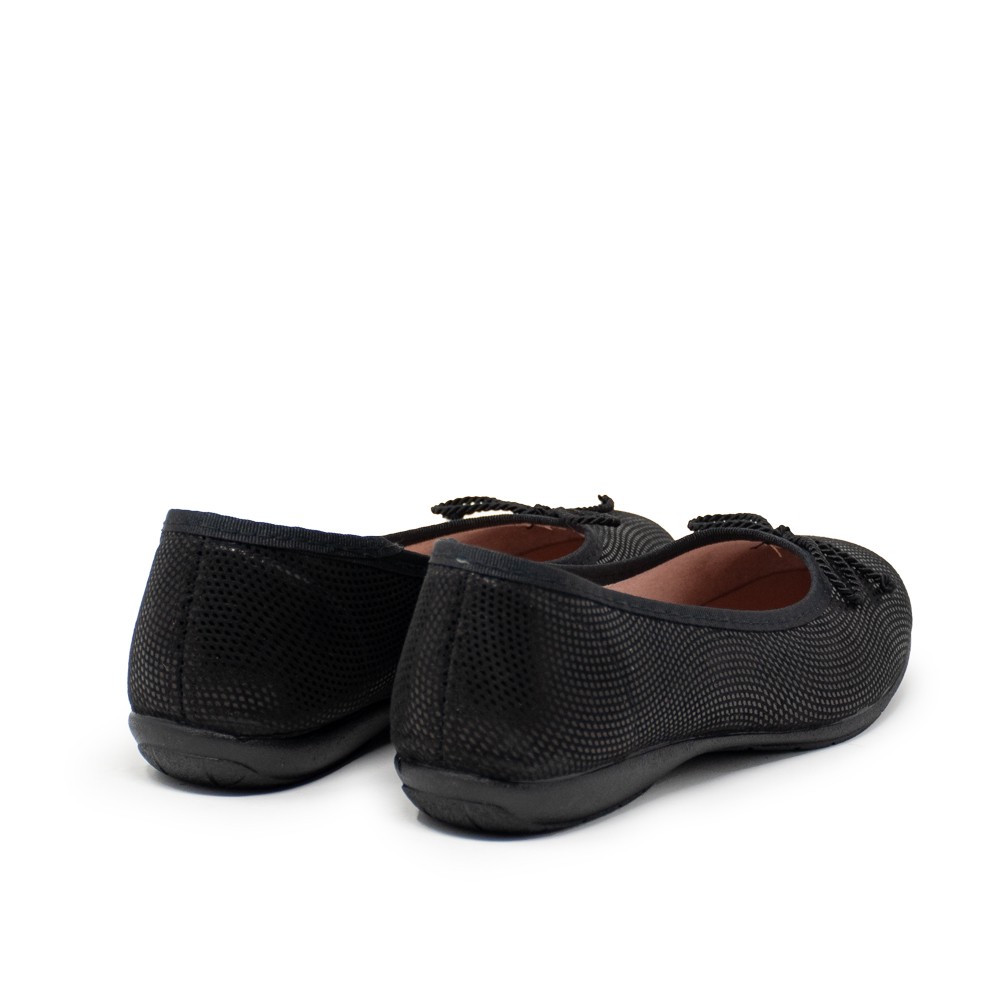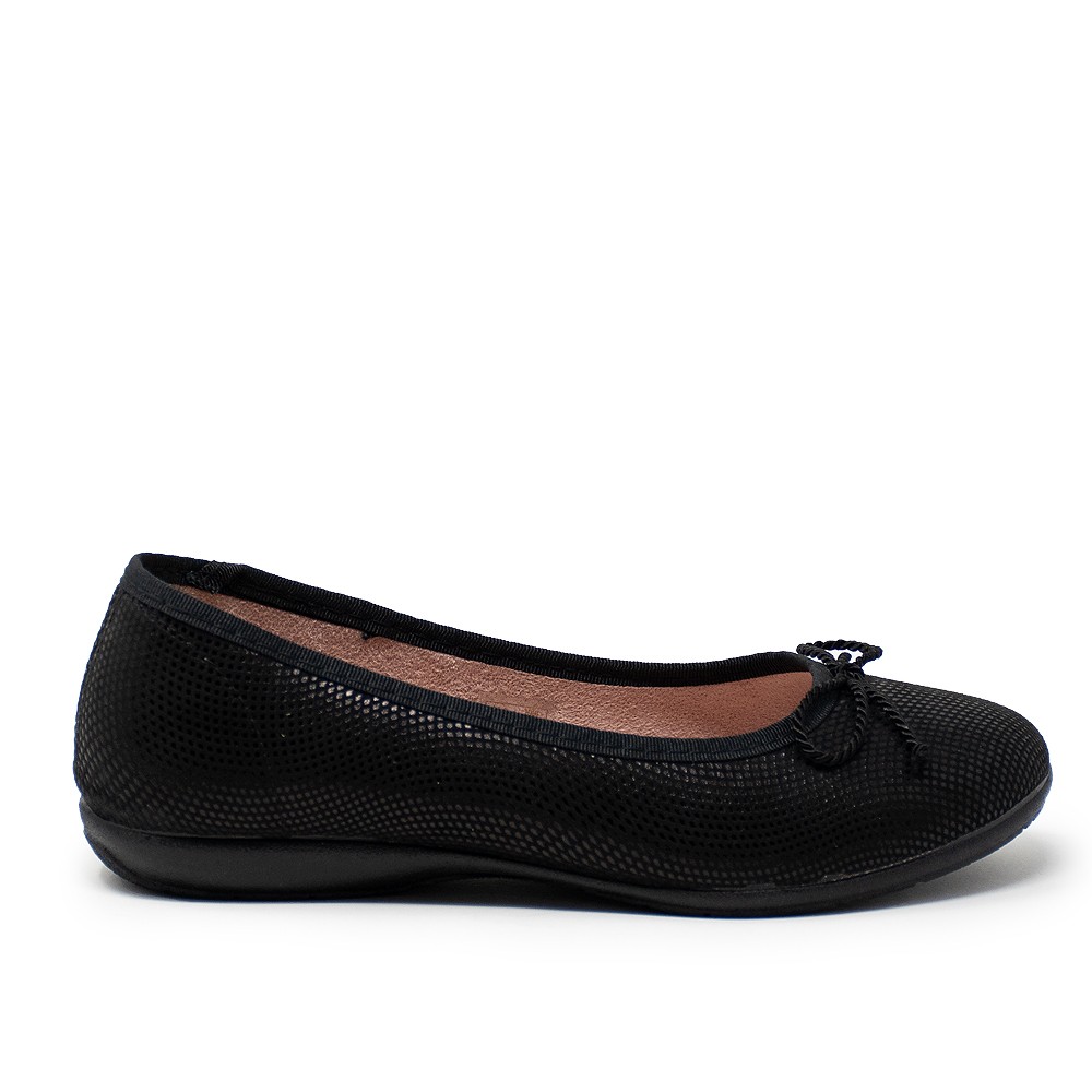 Su diseño clásico presenta una punta redonda y un pequeño lazo decorativo en la parte delantera, añadiendo un toque femenino y delicado. La suela plana ofrece estabilidad y comodidad en cada paso, ideal para usar durante largas jornadas sin sacrificar el estilo.