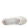 El color hielo de estas bailarinas las hace perfectas para combinar con una amplia variedad de looks, desde los más casuales hasta los más elegantes. Su diseño clásico con punta redonda y detalle de lazo en la parte delantera las convierte en un calzado atemporal que nunca pasará de moda.