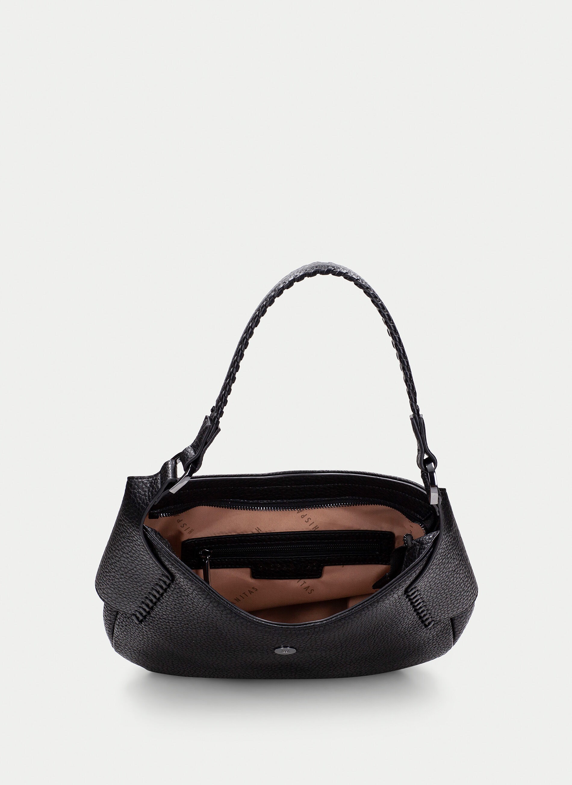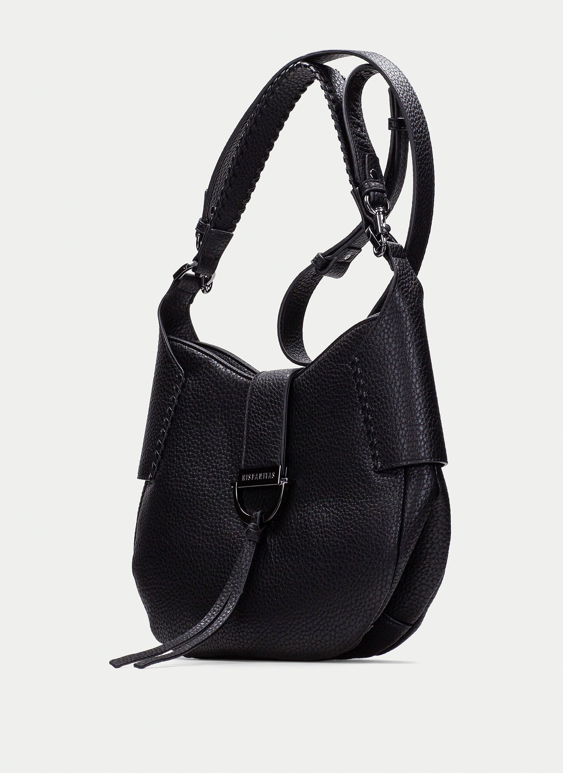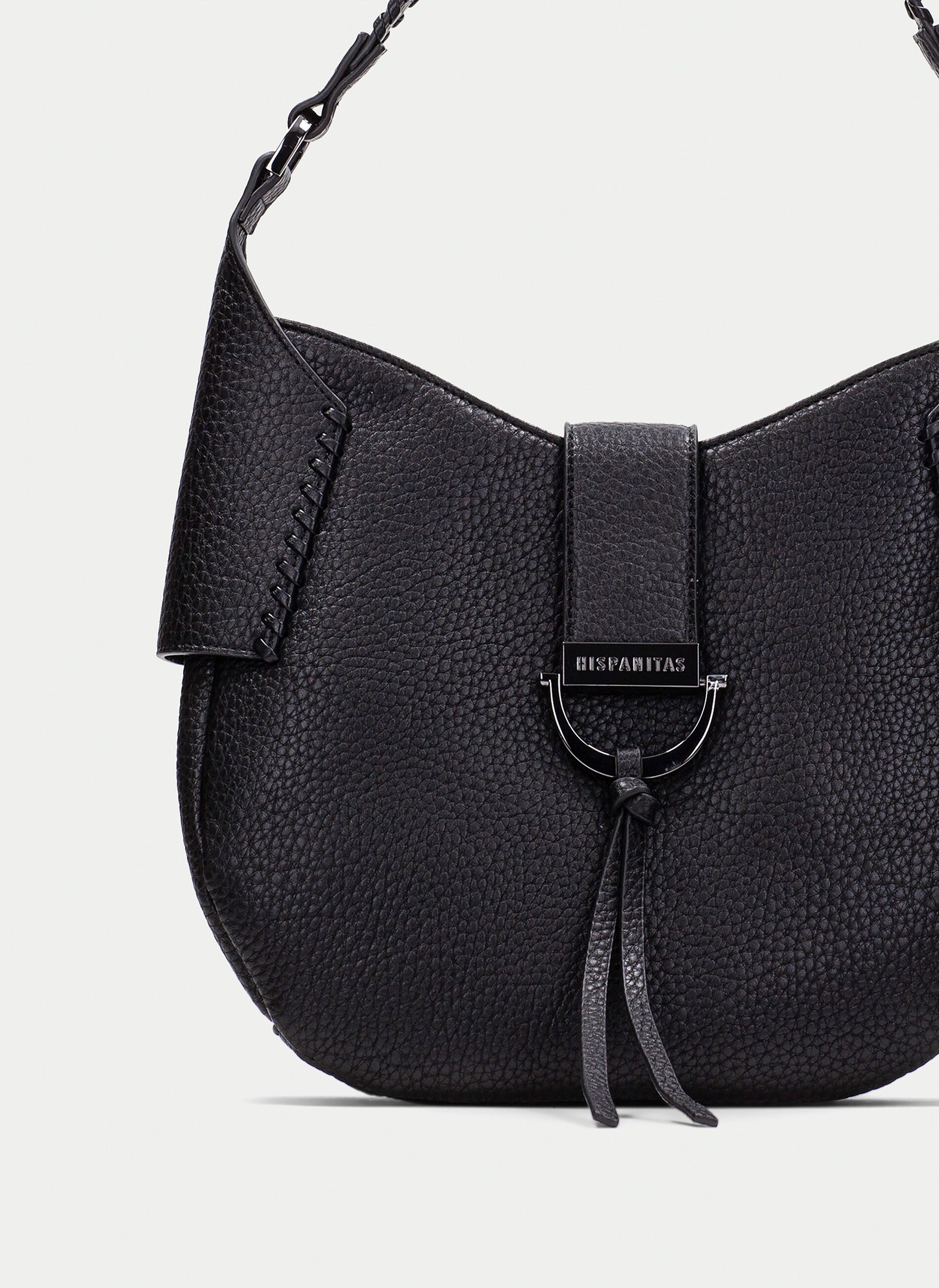 Descubre la combinación perfecta entre estilo y funcionalidad con el bolso media luna Black de Hispanitas. Hazte con el tuyo hoy mismo y marca tendencia donde quiera que vayas.
