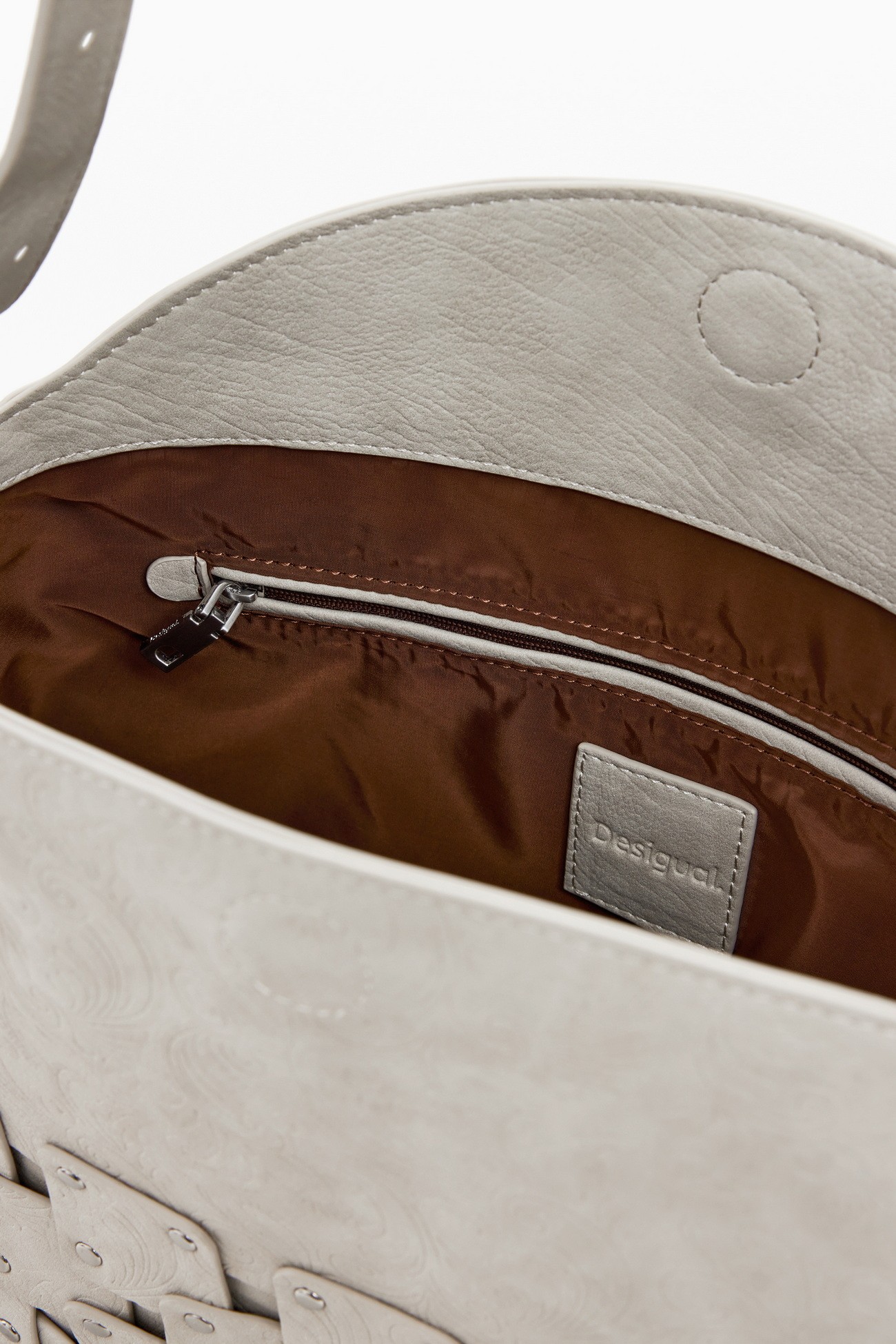 No esperes más y hazte con el bolso New Pach 2 Piedra de Desigual para añadir un toque de estilo a tus outfits diarios. ¡Hazte con él ahora!