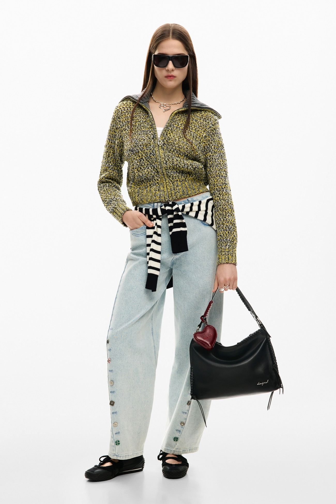 Su diseño en color negro le da un toque sofisticado y versátil, perfecto para combinar con cualquier outfit. Además, cuenta con detalles en colores vibrantes y estampados característicos de Desigual que le dan un toque de originalidad y estilo único.
