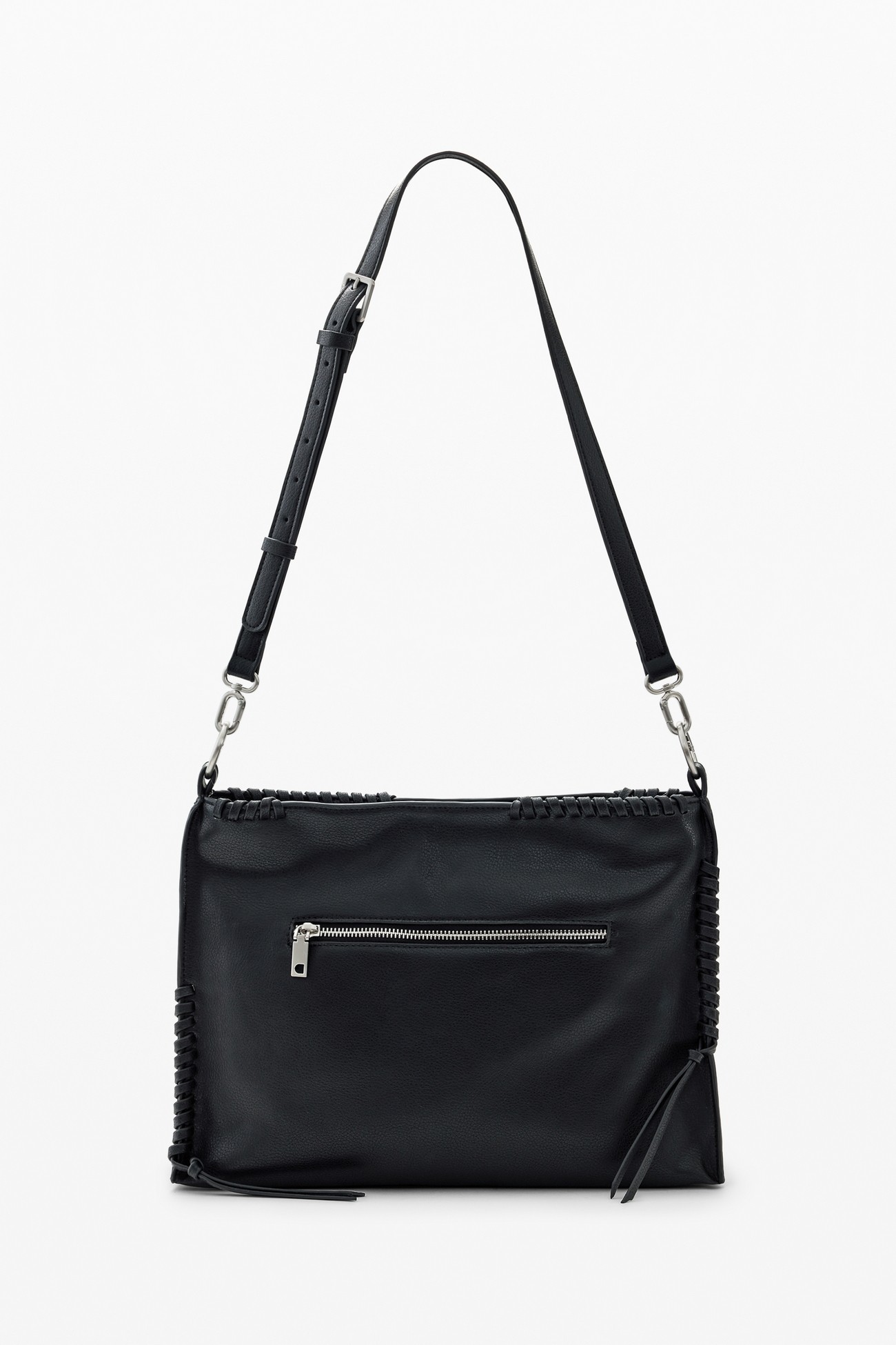 Este bolso Desigual también cuenta con bolsillos adicionales en el interior y en el exterior para que puedas organizar tus pertenencias de forma práctica y cómoda. Su correa ajustable te permite llevarlo al hombro o cruzado, adaptándose a tus necesidades y preferencias.