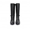 El diseño de estas botas destaca por su altura hasta la rodilla, lo que las convierte en el complemento ideal para tus looks más formales o informales. La hebilla en el tobillo le da un toque moderno y original, añadiendo un detalle único a tu outfit. Además, su color negro las hace versátiles y fáciles de combinar con cualquier prenda de tu armario.