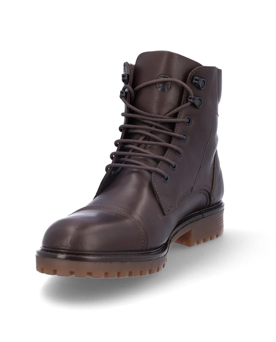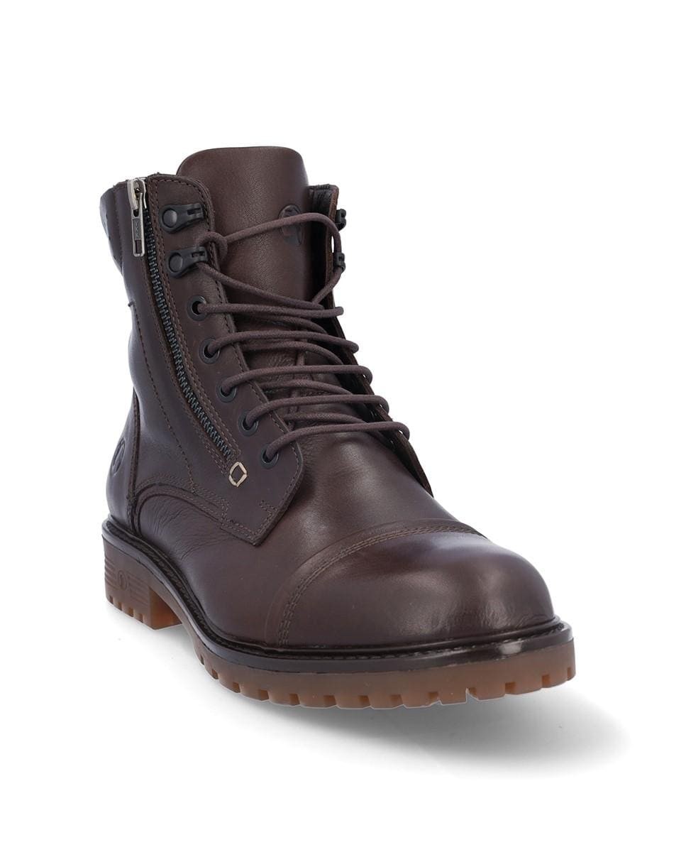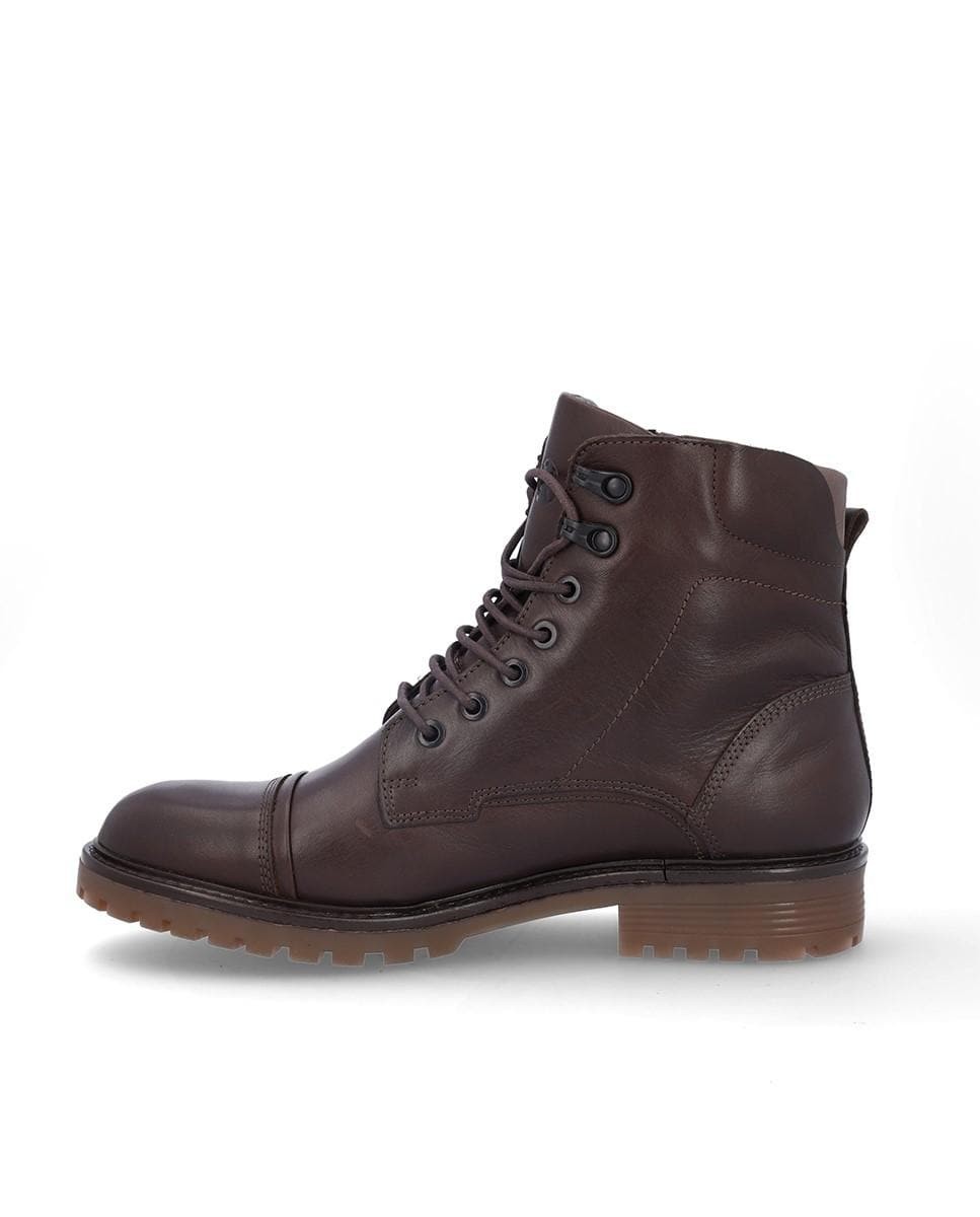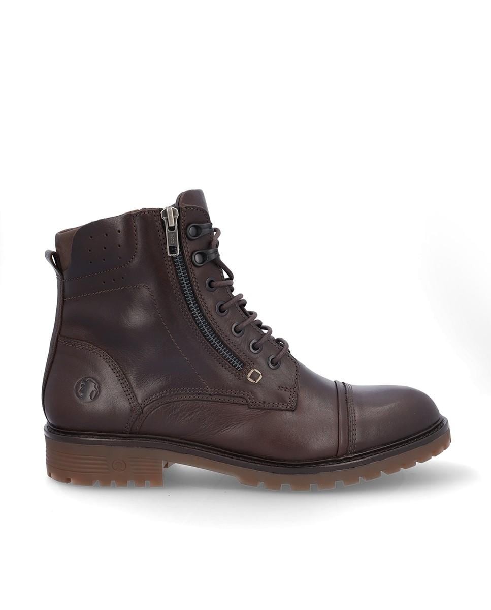 Botín de piel con cordones en color marrón