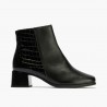 La parte trasera del botín cuenta con un detalle especial que lo hace destacar entre los demás modelos: un acabado en coco que añade textura y estilo al conjunto. Este detalle sutil pero llamativo hace que estos botines sean una opción versátil que se adapta tanto a looks formales como informales.