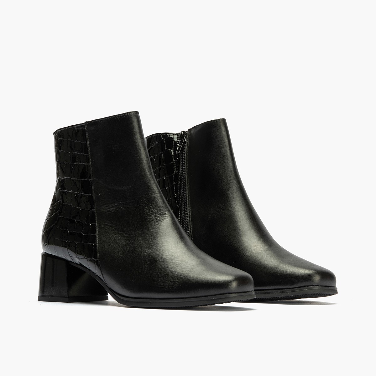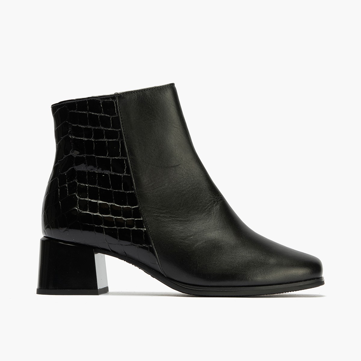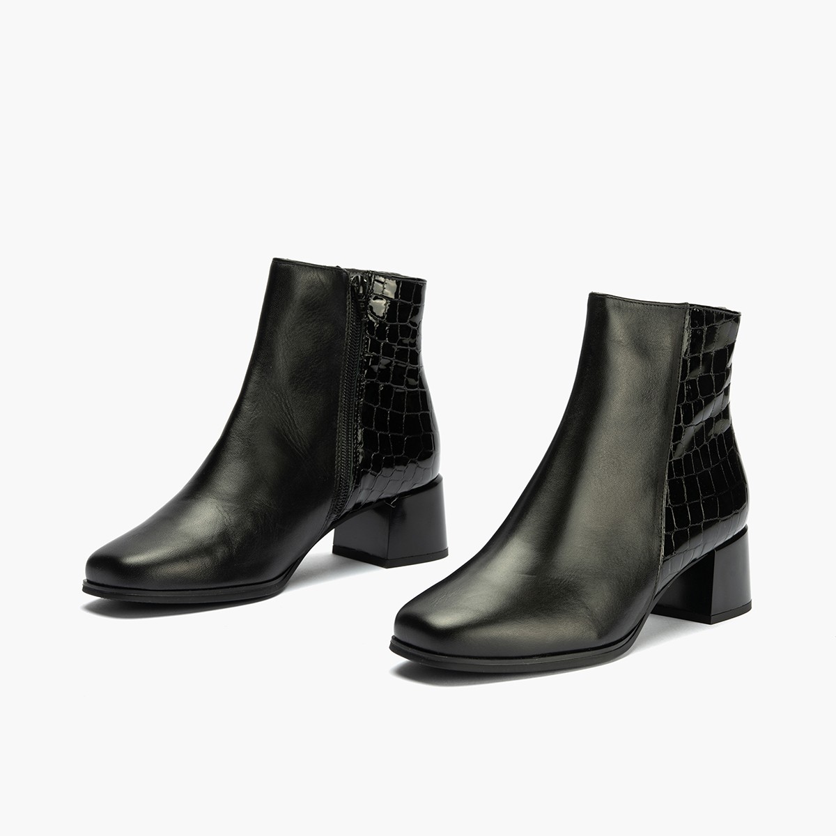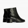 El material de coco charol negro le da a estos botines un toque de distinción y originalidad, perfecto para aquellas mujeres que buscan un calzado único y diferente. Su tacón bajo proporciona una altura cómoda y estable, ideal para caminar durante horas sin cansancio.