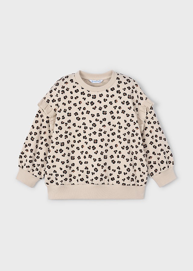 No esperes más y hazte con el pullover volante mangas en color arena de Mayoral para darle a tu pequeña un look único y lleno de estilo.