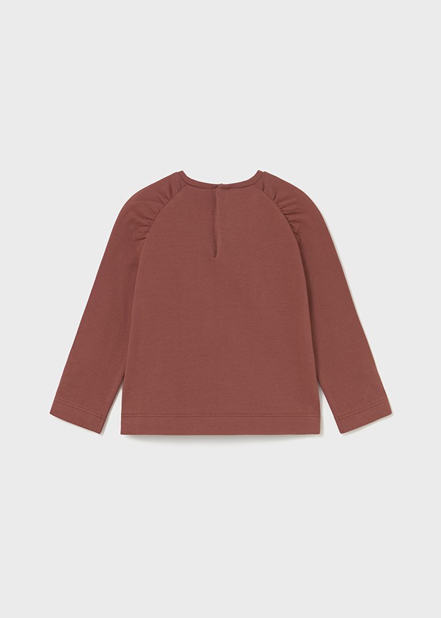 No te pierdas la oportunidad de añadir esta camiseta a la colección de tu pequeña. Combina estilo, confort y calidad en una sola prenda con la camiseta manga larga terracota de Mayoral.