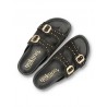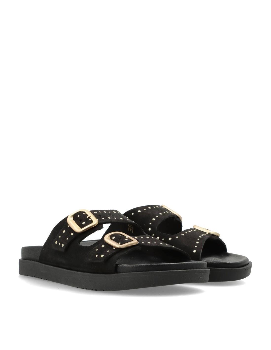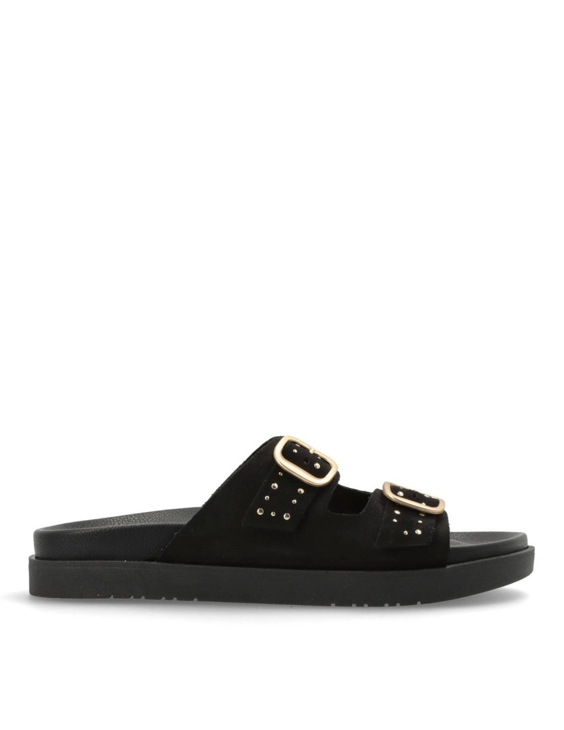 Estas sandalias están diseñadas con dos hebillas que permiten un ajuste personalizado para mayor comodidad. El material de serraje en color negro le da un toque elegante y versátil que combina fácilmente con diferentes outfits.