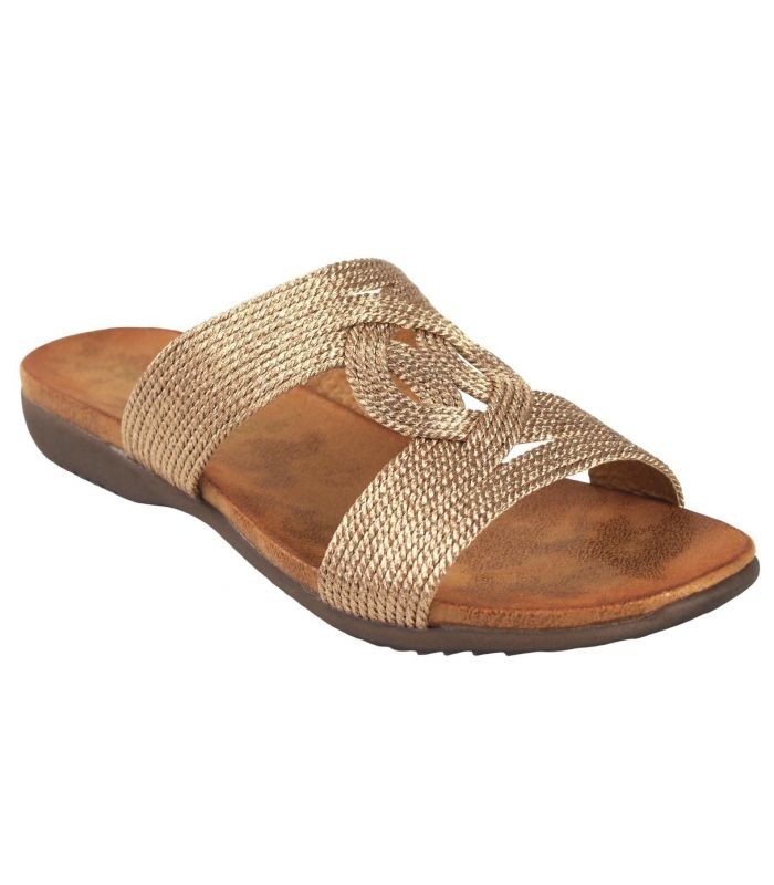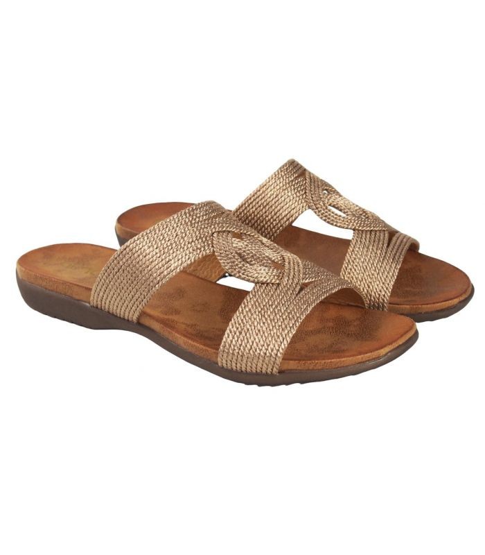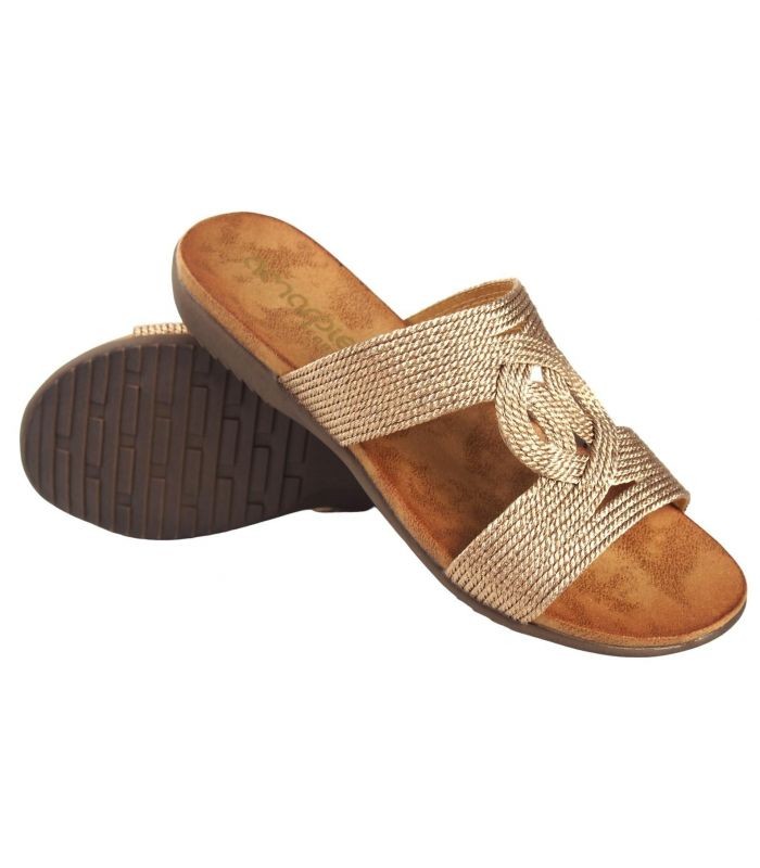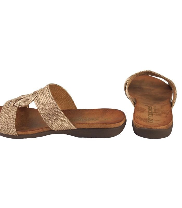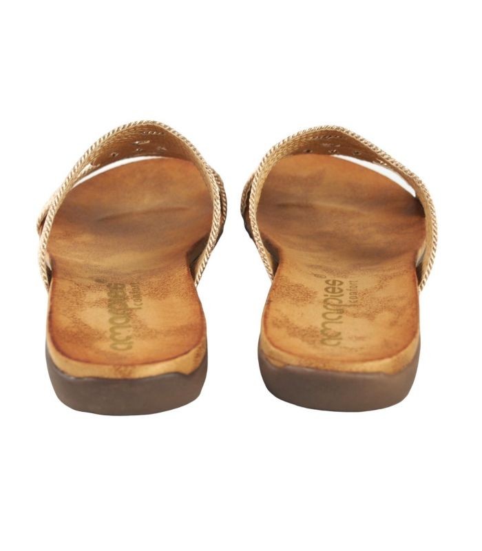 Sandalias Planas De Mujer AMARPIES 23575 BRONCE PALA TIRAS CORDON METALIZADO BRONCE
