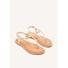 Estas sandalias están diseñadas en un color blanco roto que aporta un toque de sofisticación a cualquier look. El detalle del triángulo en el empeine le da un toque único y moderno, haciendo que destaquen entre las demás sandalias planas.