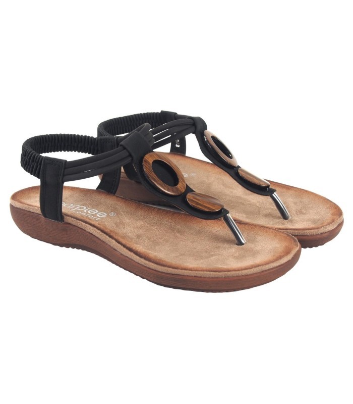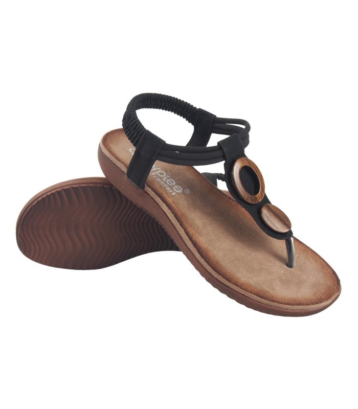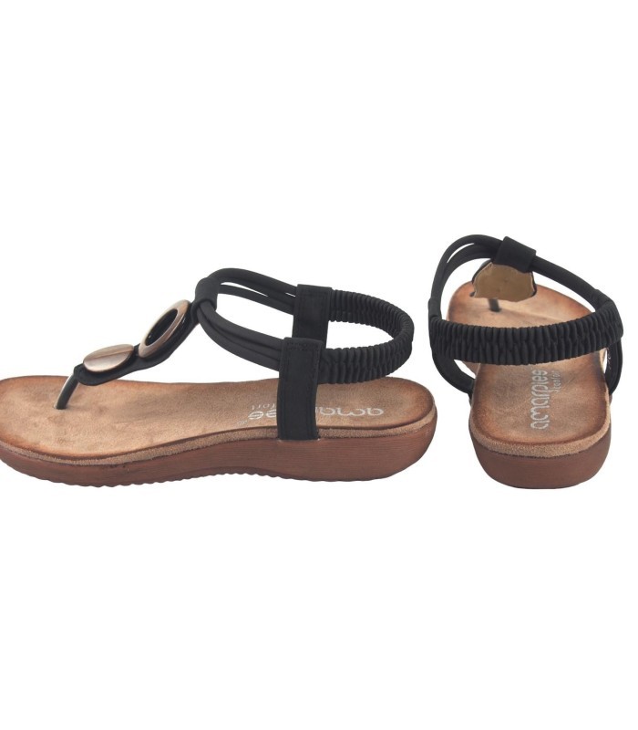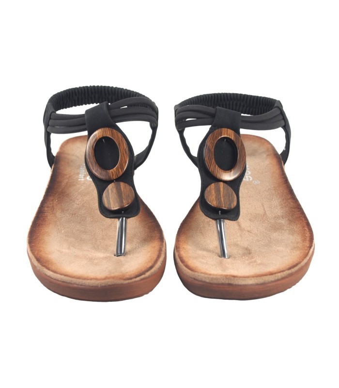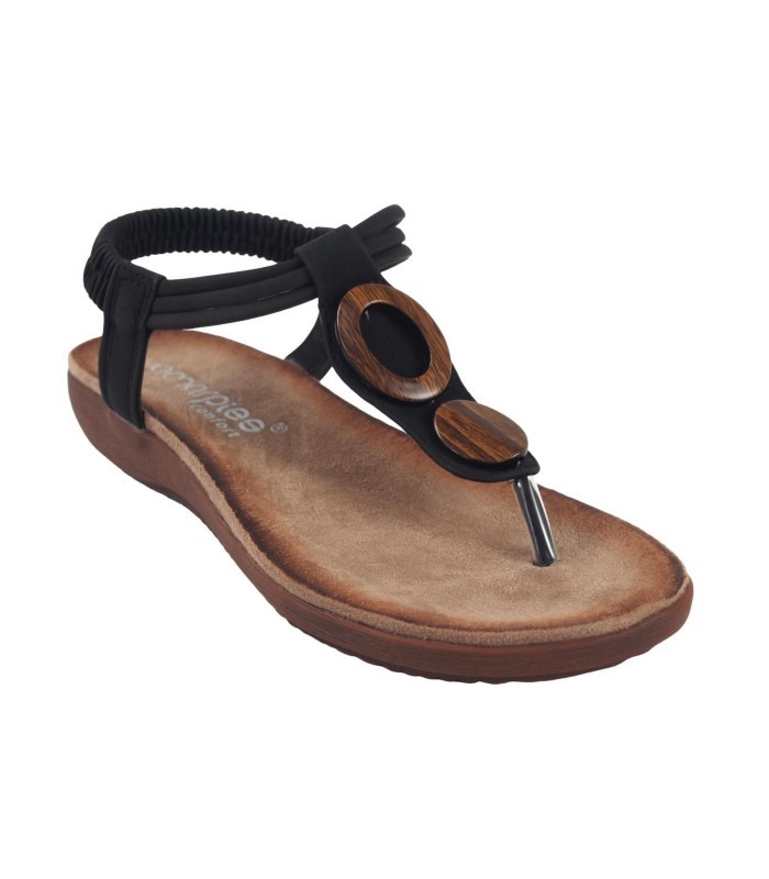 Sandalias Planas De Mujer AMARPIES 17063 NEGRO ESCLAVA CONFORT MADERITAS NEGRO