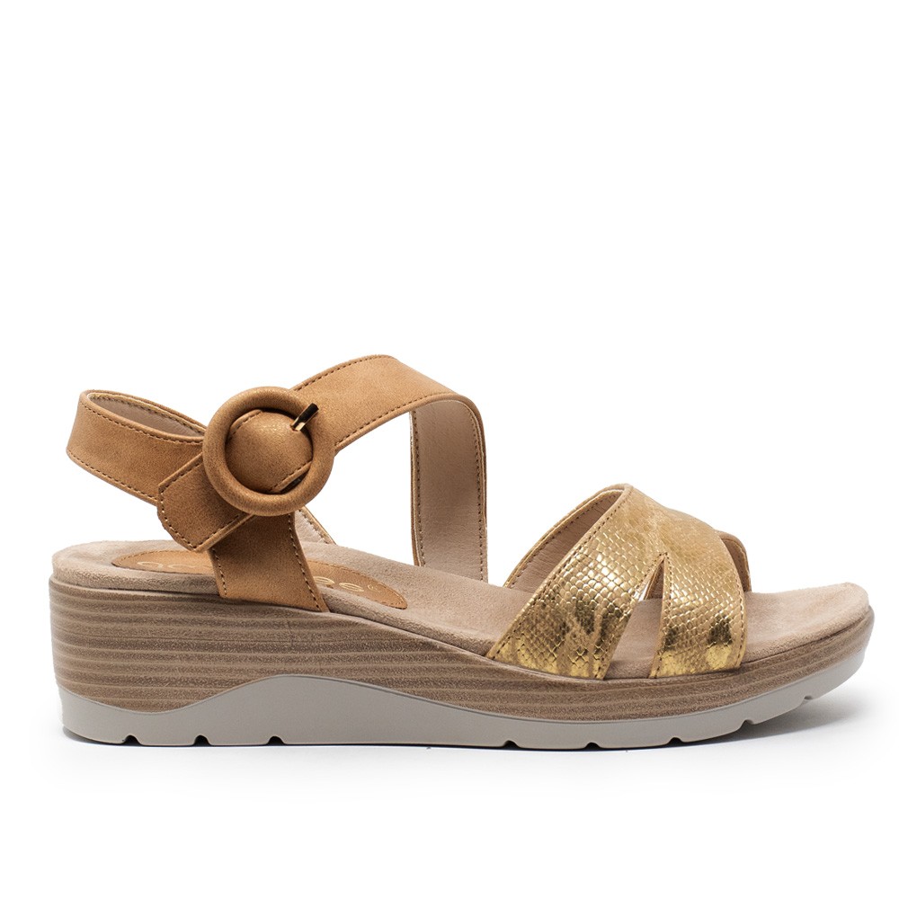 SANDALIA CUÑA DOBLE HEBILLA REDONDA CUER
