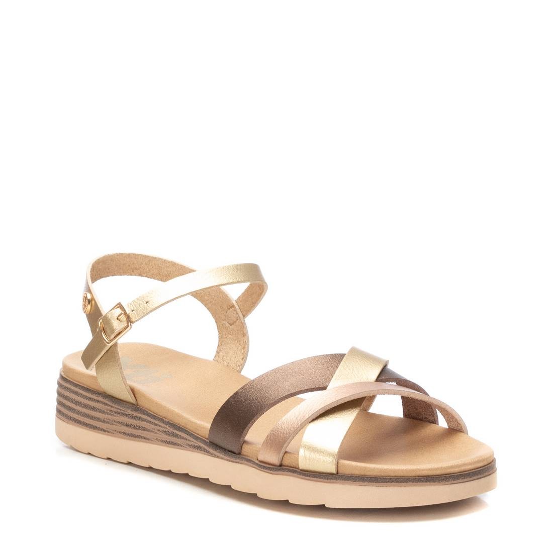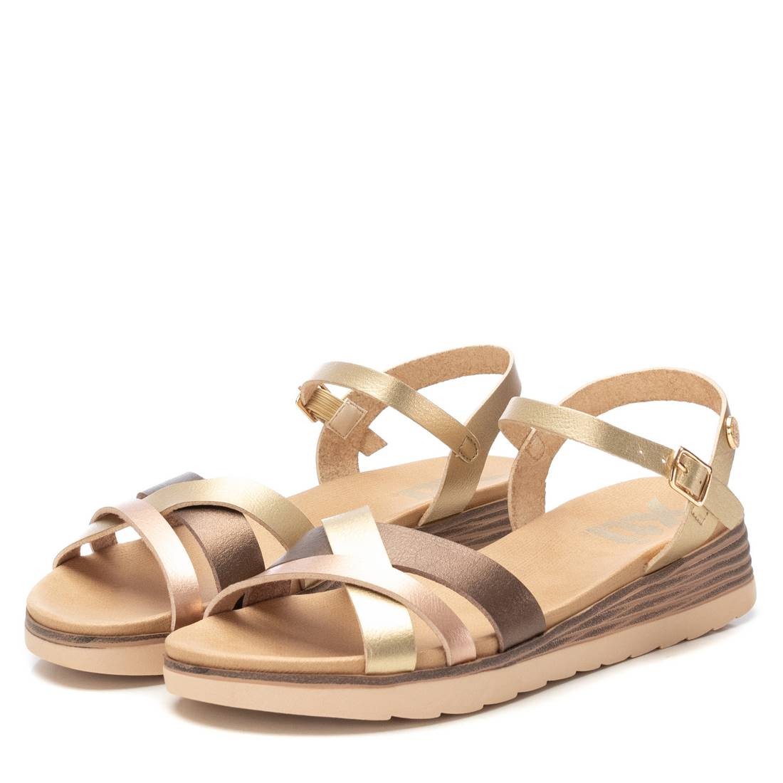 Las sandalias de cuña con tiras en color oro de XTI son el complemento perfecto para tus outfits más chic. Ya sea para una fiesta, una cena especial o simplemente para darle un toque elegante a tu look diario, estas sandalias serán tu mejor aliado. No pierdas la oportunidad de lucir a la moda con este calzado único y exclusivo.