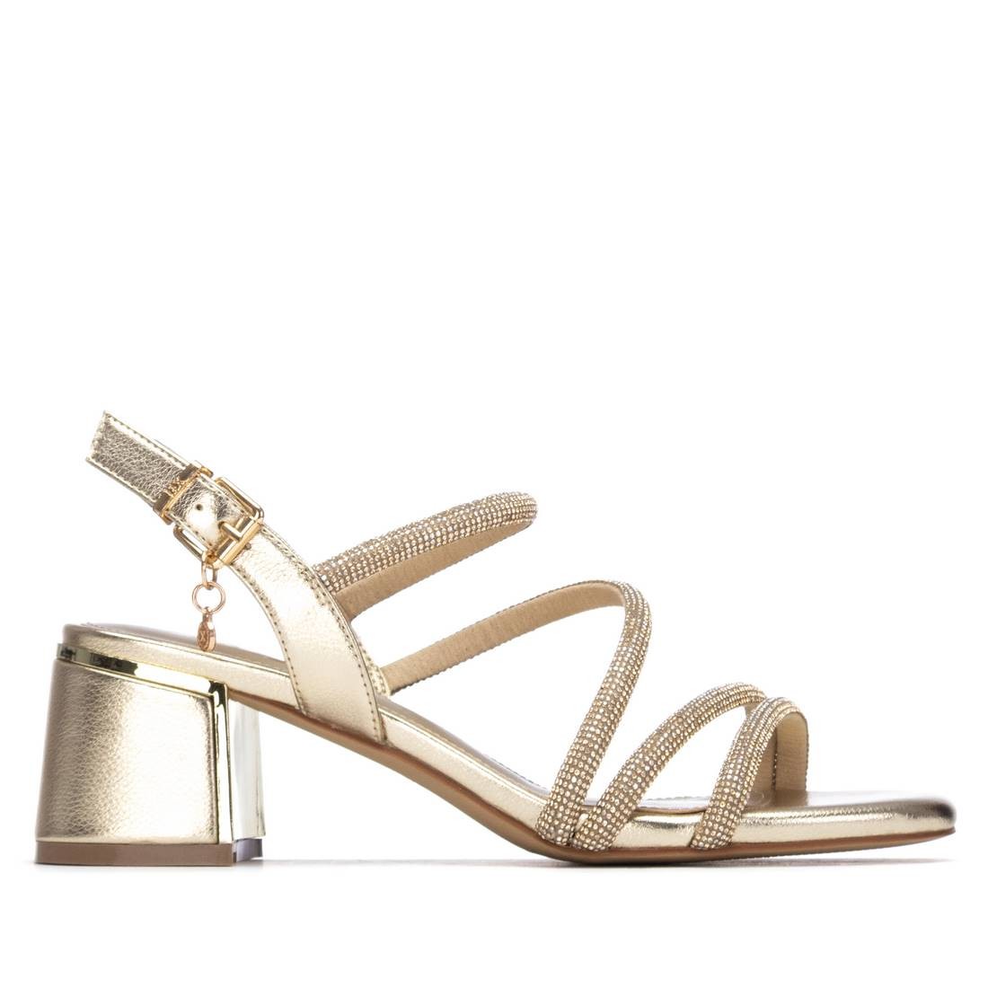 Las sandalias de tiras tubulares en color oro de la marca XTI son el complemento perfecto para lucir elegante y a la moda en cualquier ocasión especial. Con un diseño sofisticado y actual, estas sandalias son ideales para eventos formales o informales donde quieras destacar tu estilo único.