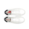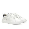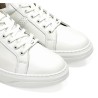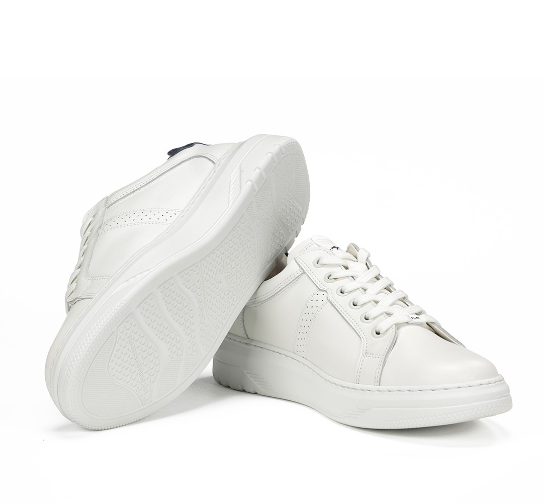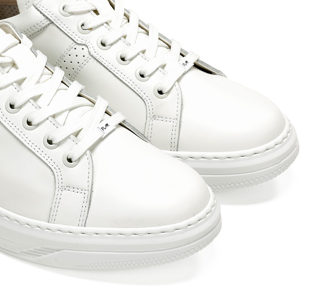La parte superior de los sneakers está fabricada en piel blanca de primera calidad, lo que garantiza durabilidad y resistencia al uso diario. Su diseño minimalista y limpio se complementa con detalles en color negro que añaden un toque de contraste y estilo único.