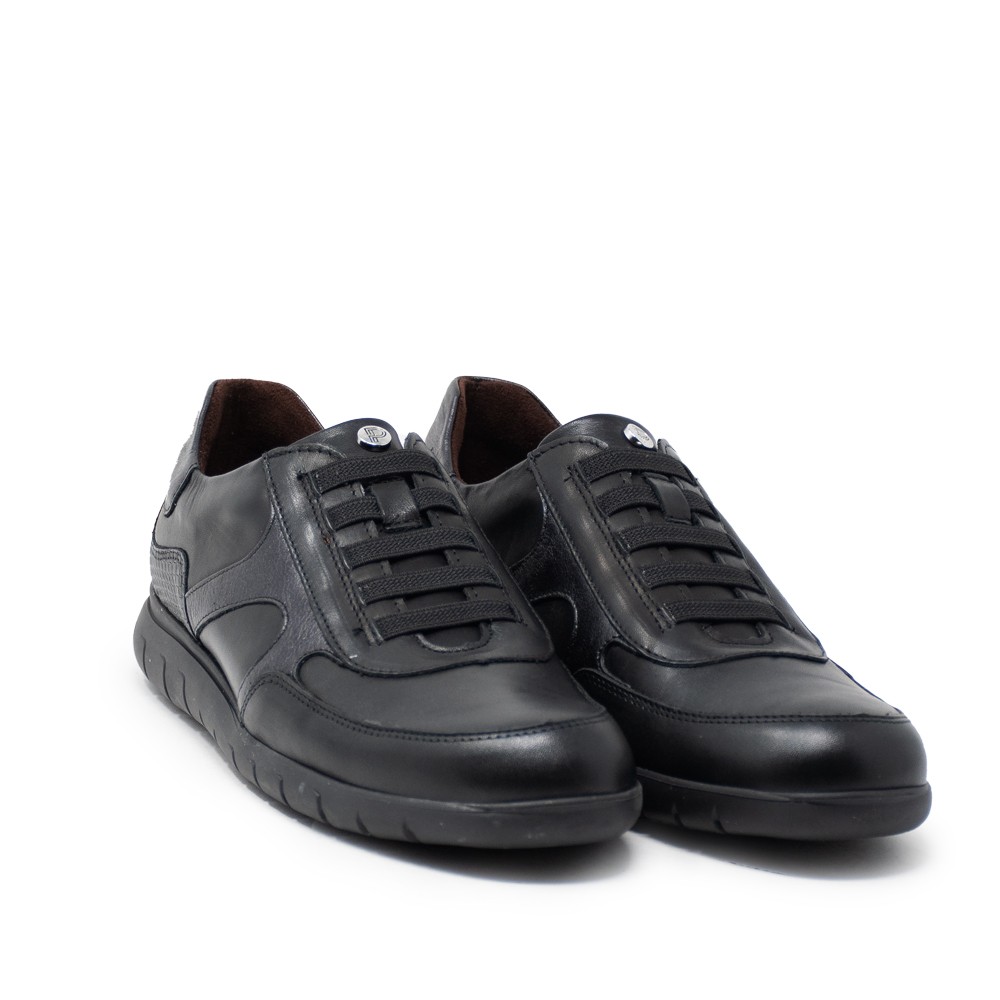 El color negro de estos deportivos los hace versátiles y fáciles de combinar con cualquier outfit. Ya sea para un look casual o más deportivo, estos sneakers son ideales para cualquier ocasión. Además, los elásticos en el empeine proporcionan un ajuste perfecto y cómodo, adaptándose a la forma de tu pie.