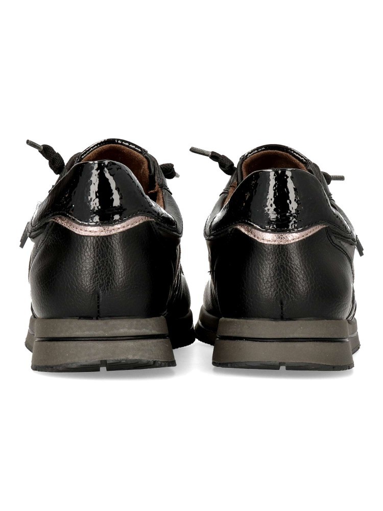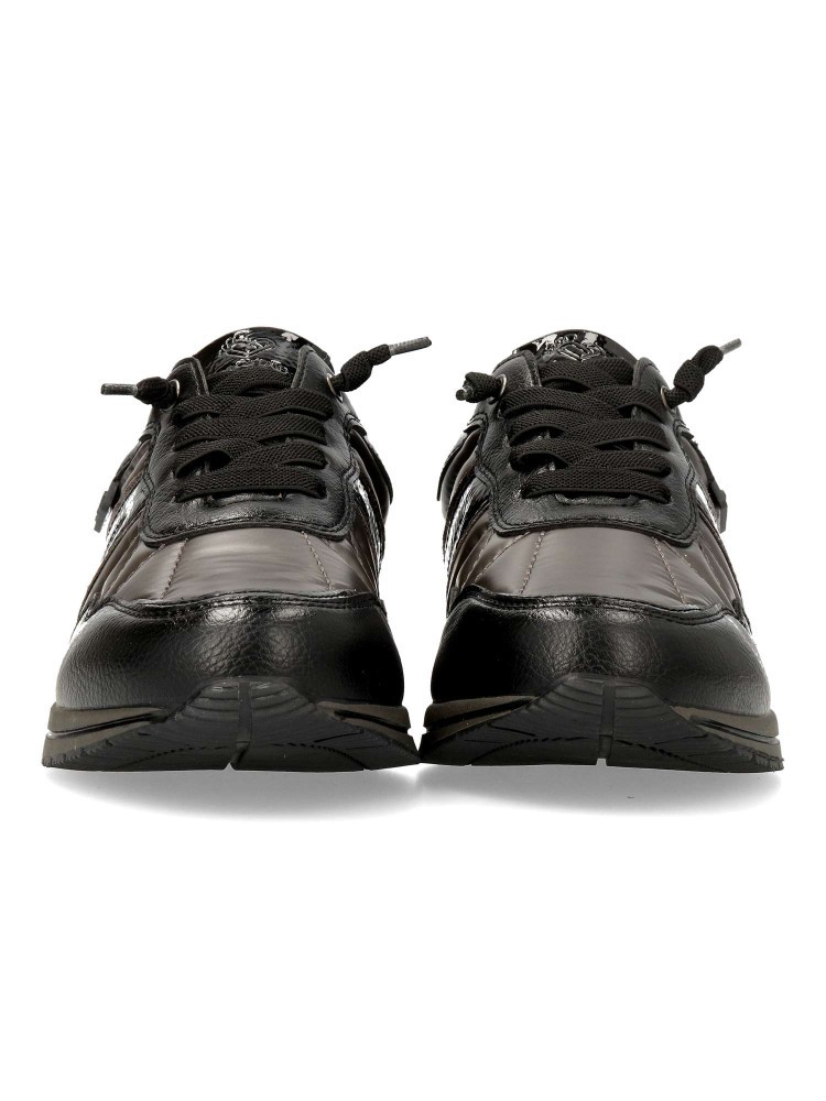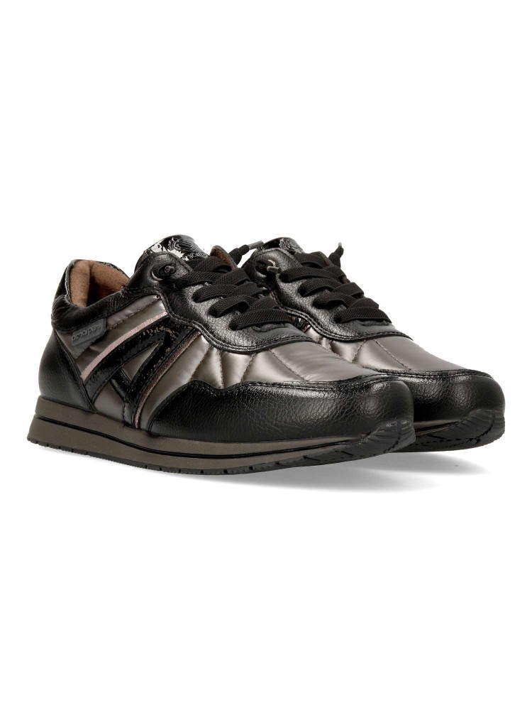 Elaboradas con materiales de alta calidad, estas zapatillas cuentan con un cordon elástico que facilita su ajuste y proporciona una mayor comodidad al caminar. Su diseño en color negro y plomo las convierte en un calzado fácil de combinar con diferentes prendas, desde jeans hasta vestidos informales.