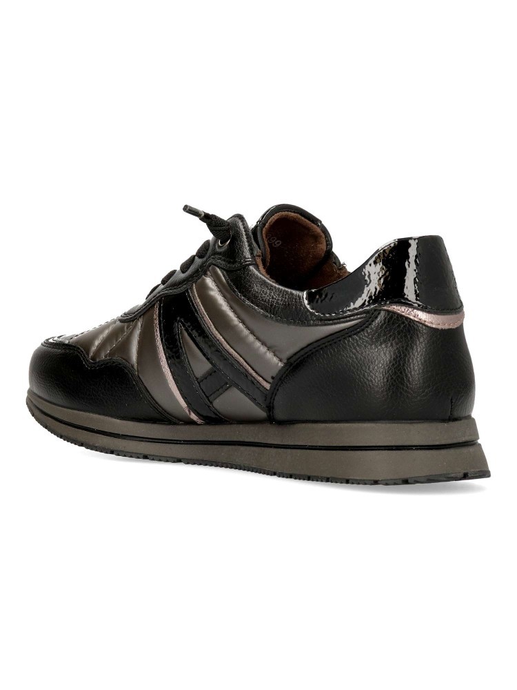 Las zapatillas CASUAL CORDON ELÁSTICO LETRA NEGRO/PLOMO de la marca AMARPIES son la combinación perfecta de comodidad y estilo. Estas sneakers para mujer destacan por su diseño moderno y versátil, ideal para completar tus looks urbanos con un toque casual y desenfadado.