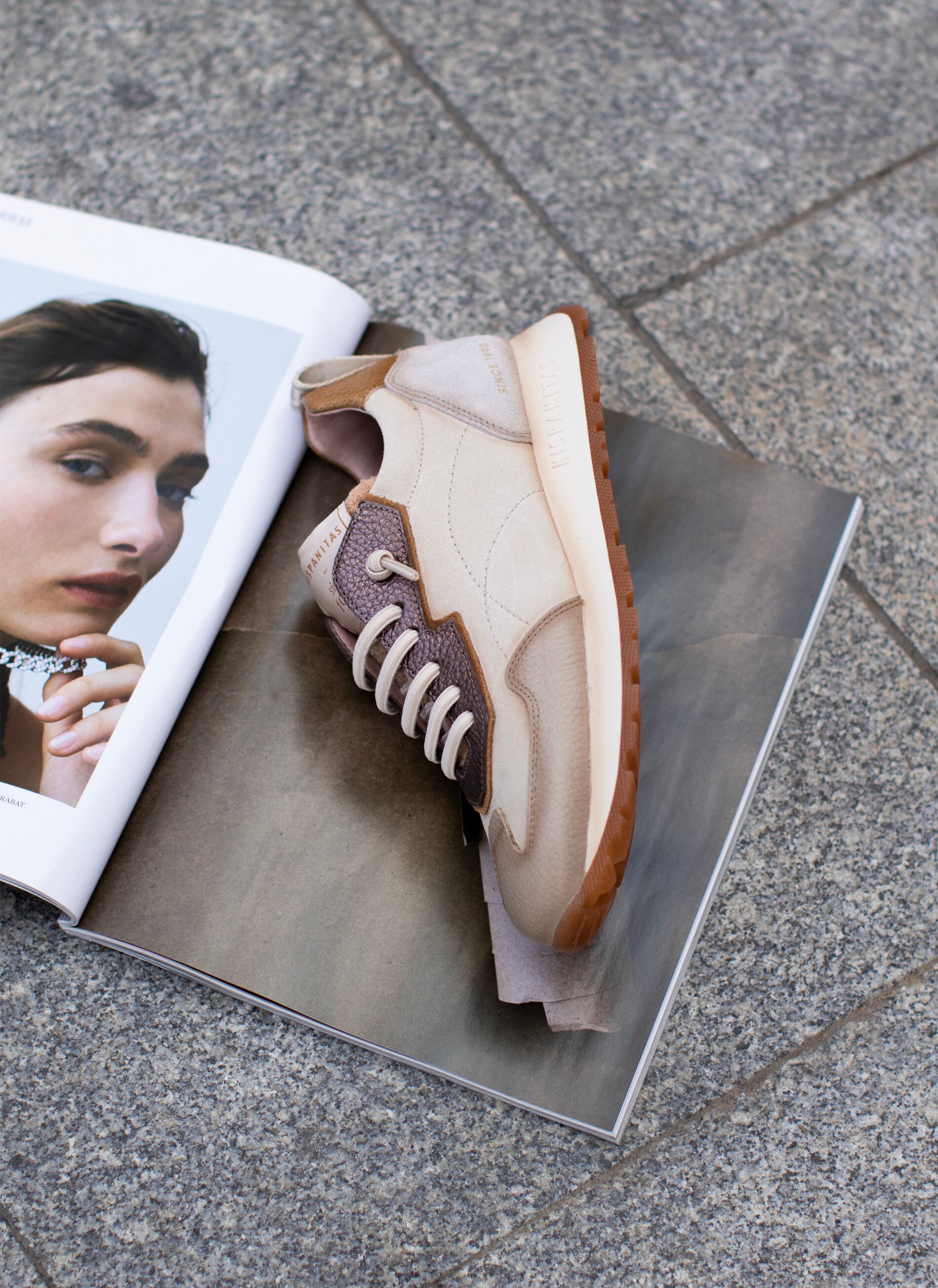 El color topo-cream-tono-ron destaca por su versatilidad, permitiendo crear diferentes outfits tanto para el día a día como para ocasiones más especiales. La combinación de colores neutros hace que estas zapatillas sean fáciles de combinar con cualquier prenda de tu armario.