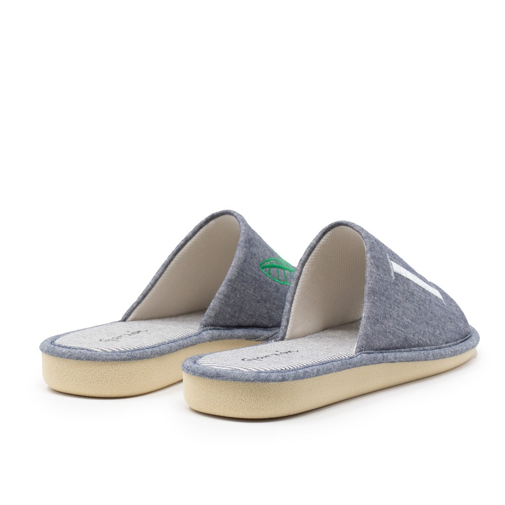 Estas zapatillas están fabricadas con materiales de alta calidad que garantizan durabilidad y resistencia. La parte superior está confeccionada en un suave tejido de color marino con detalles en tonos claros que le dan un toque elegante y sofisticado. La plantilla acolchada proporciona una pisada suave y cómoda, ideal para descansar los pies después de un largo día.