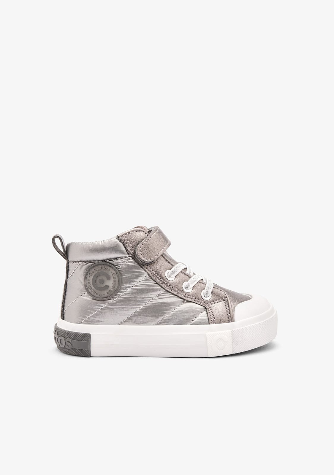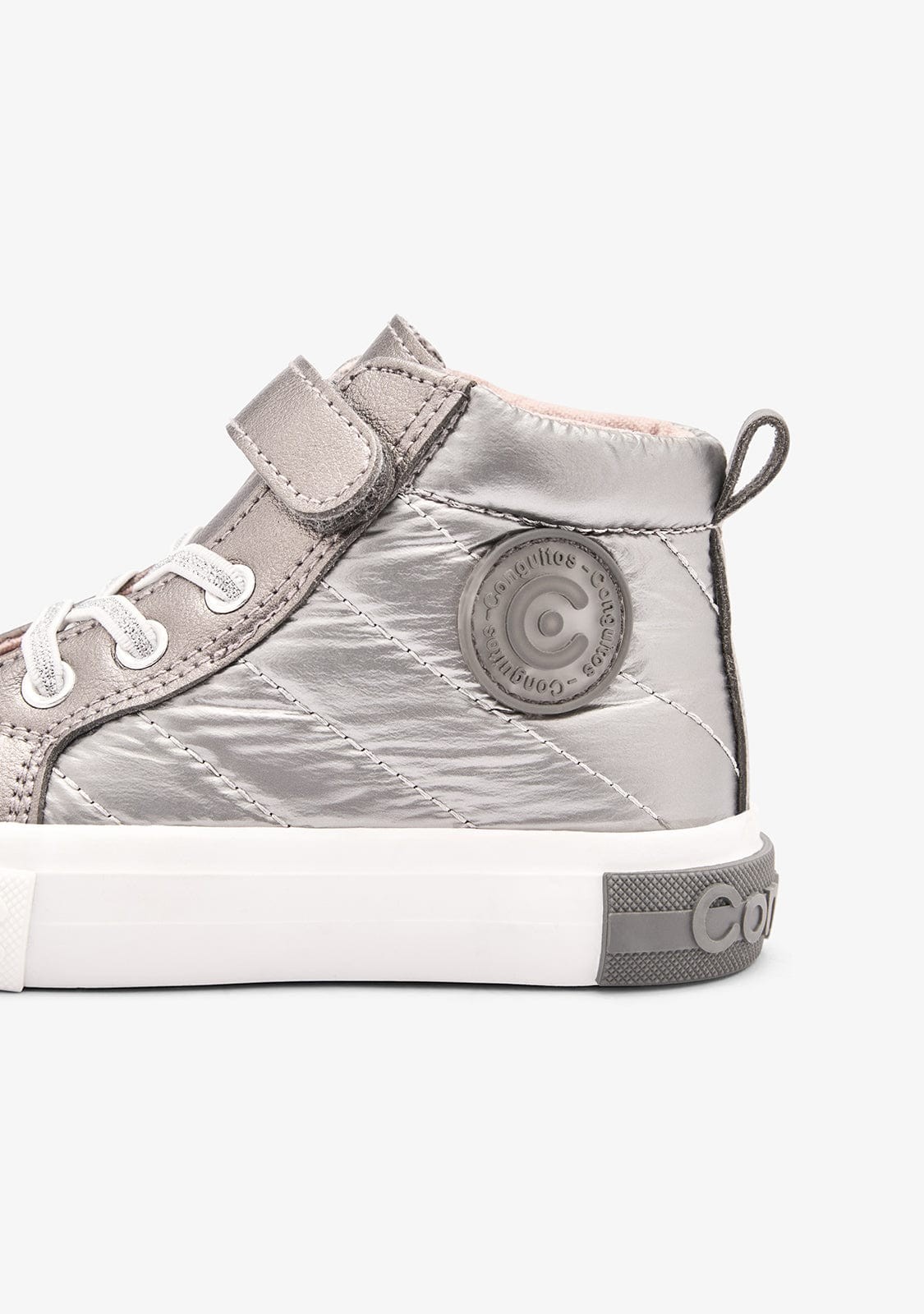 Las Sneakers Bota Silver de Conguitos son el calzado perfecto para las niñas que quieren lucir a la moda y estar cómodas al mismo tiempo. Estas zapatillas de lona en color plateado son ideales para cualquier ocasión, ya sea para un día de juegos en el parque o para salir a pasear con la familia.