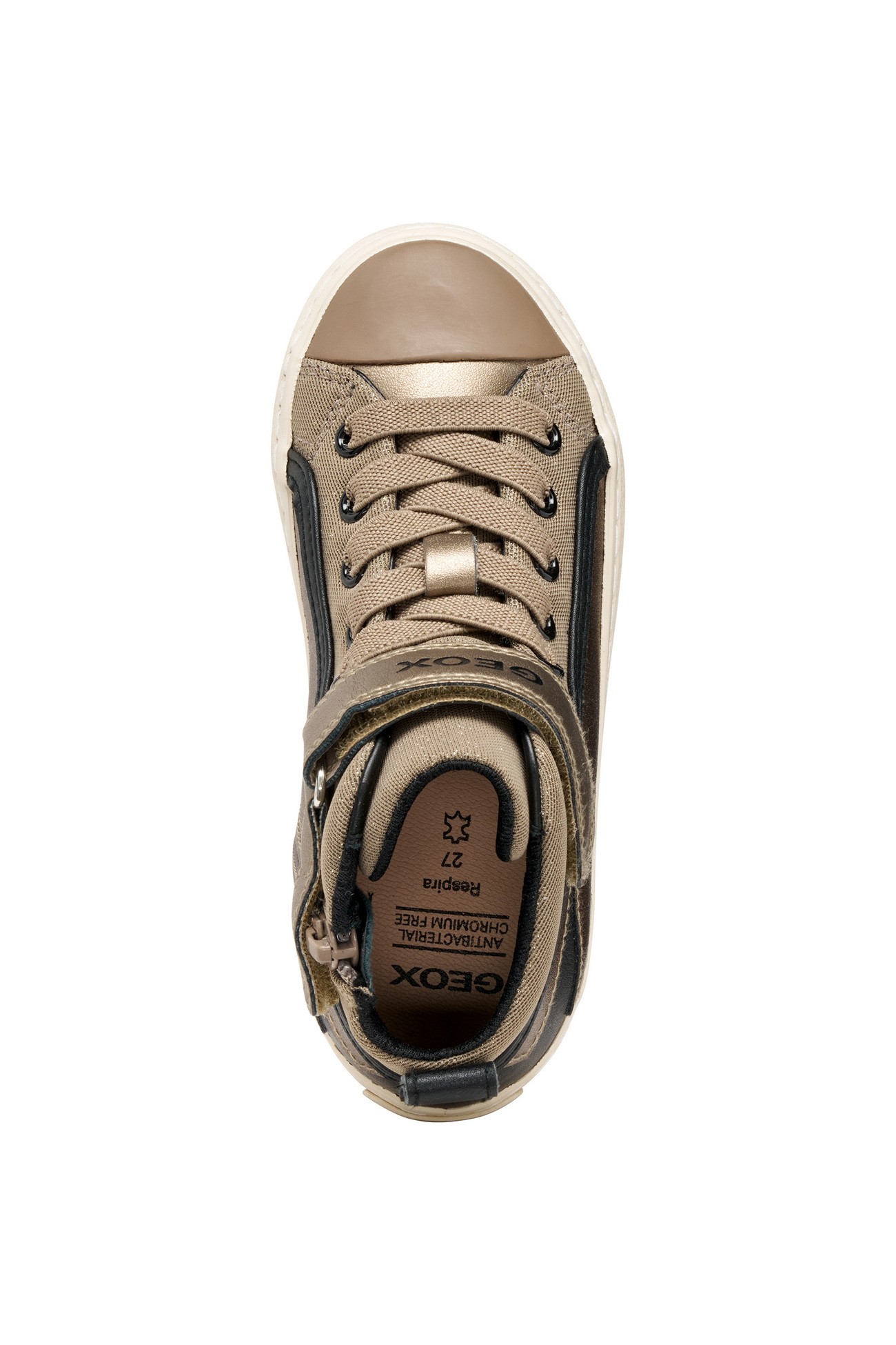 Los Sneakers Elástico y Velcro Beig/Black de la marca Geox son la combinación perfecta de estilo, comodidad y calidad para las niñas más fashionistas. Estas zapatillas de lona en tonos beige y negro son ideales para completar cualquier look casual con un toque moderno y deportivo.