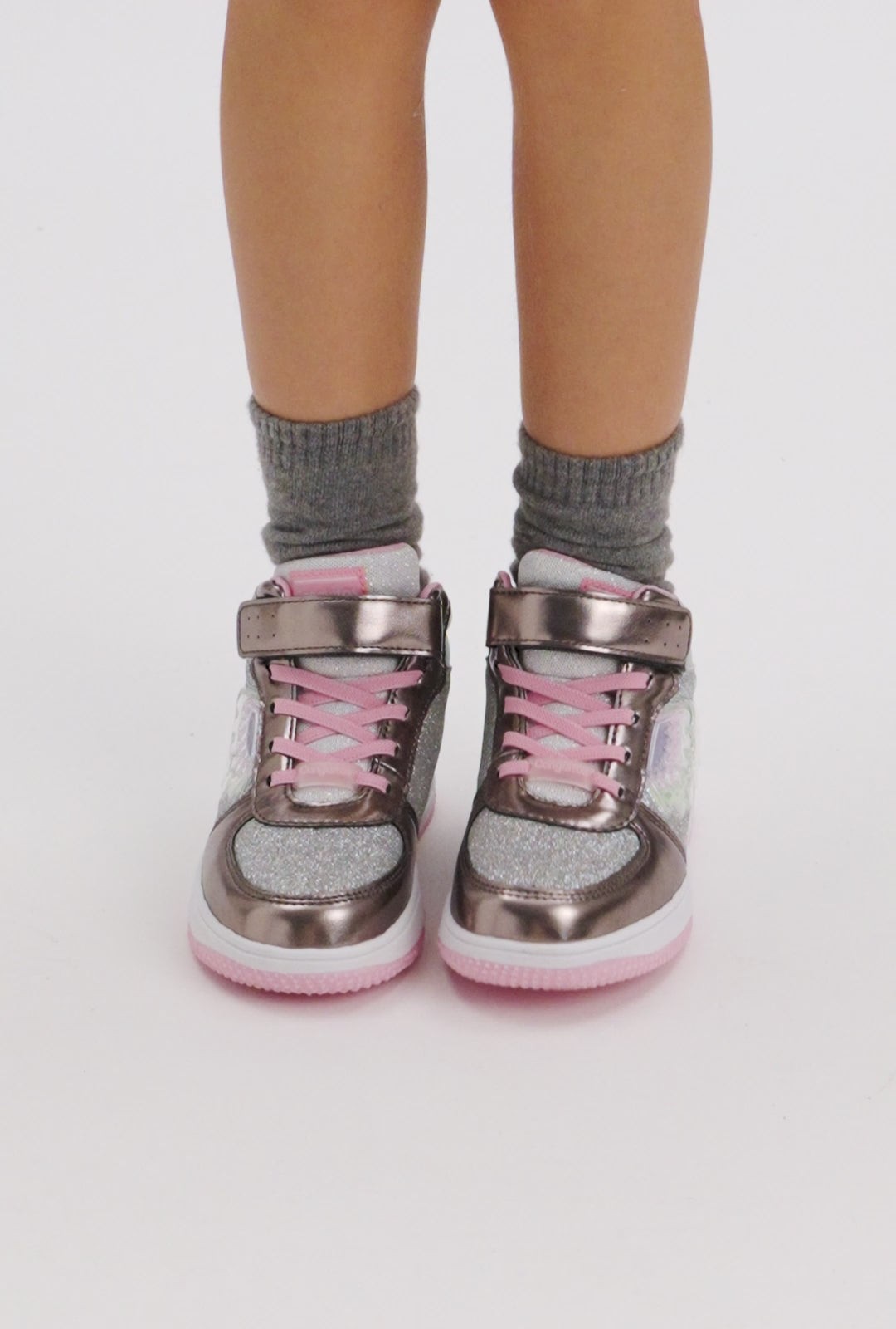 Ideal para combinar con ropa casual o deportiva, las DEPORTIVO BOTA LUCES PEWTER son versátiles y se adaptan a cualquier ocasión. Ya sea para ir al parque, jugar con amigos o simplemente dar un paseo, estas zapatillas son la elección perfecta para mantener a tu hija cómoda y a la moda.