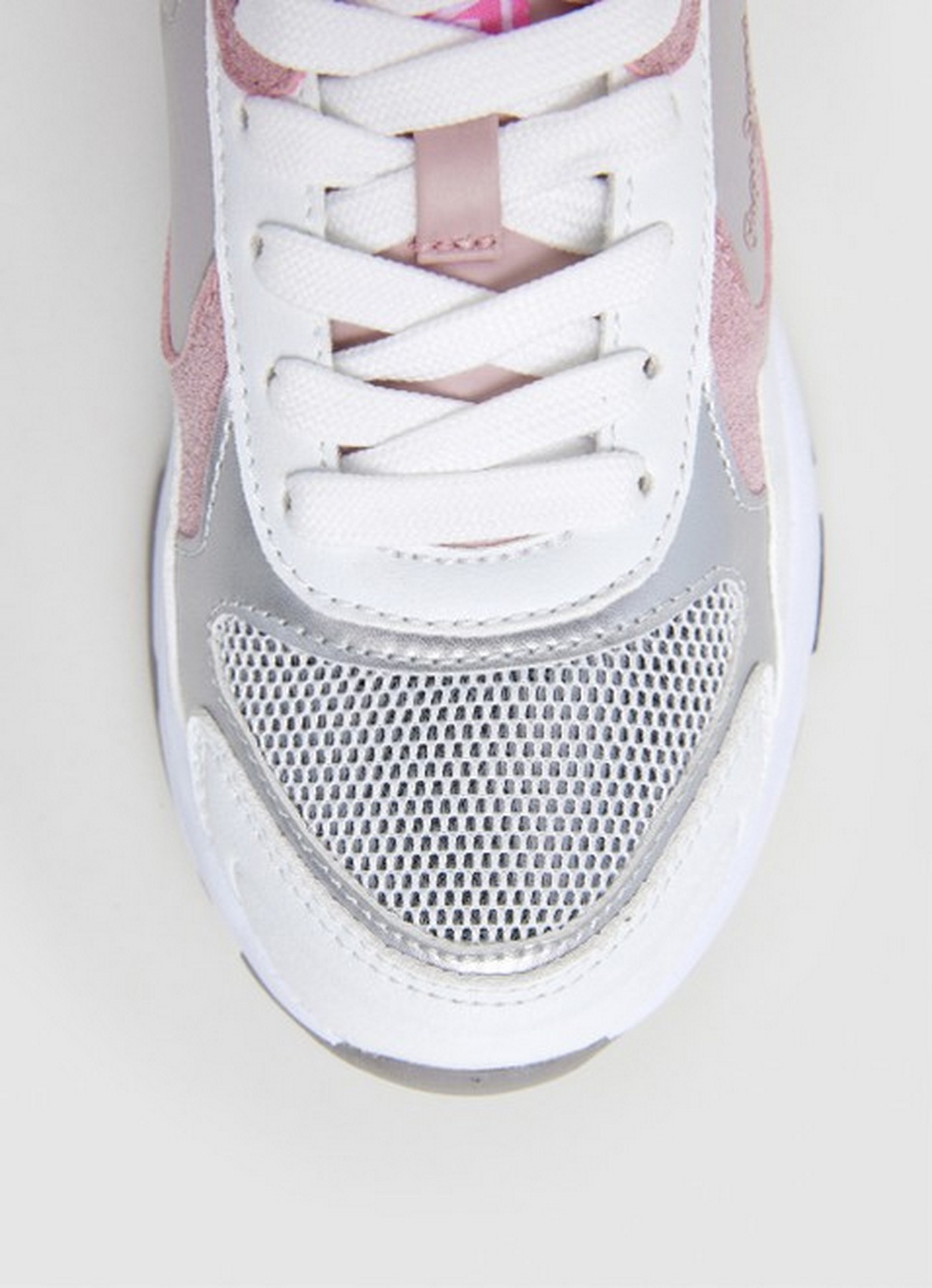El diseño de estas zapatillas destaca por su estilo urbano y desenfadado, perfecto para las niñas que quieren lucir a la moda sin renunciar a la comodidad. El color blanco predominante se combina con detalles en tonos plateados que añaden un toque de brillo y elegancia al calzado.