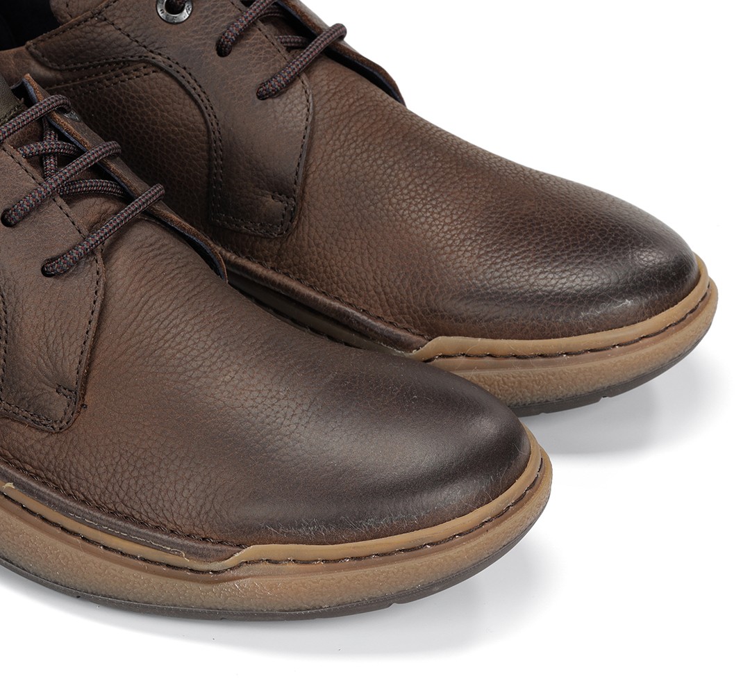 El diseño de estos bluchers destaca por su color piedra, que combina fácilmente con diferentes outfits. La parte superior está confeccionada en piel de primera calidad, lo que garantiza durabilidad y resistencia al uso diario.