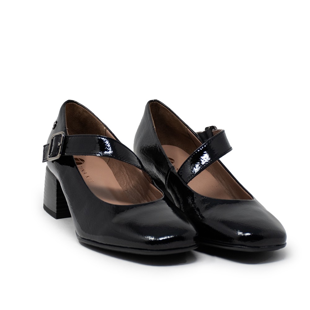Los zapatos MERCEDES HEBILLA CHAROL NEGRO de la marca TINA KIZ son el complemento perfecto para cualquier look casual de mujer. Su diseño elegante y sofisticado los convierte en un calzado versátil que se adapta a diferentes ocasiones.