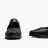La parte superior está elaborada en piel suave de color negro, lo que le da un toque elegante y sofisticado al calzado. La plantilla acolchada proporciona una sensación de confort durante todo el día, mientras que la suela antideslizante garantiza una pisada segura en todo tipo de superficies.