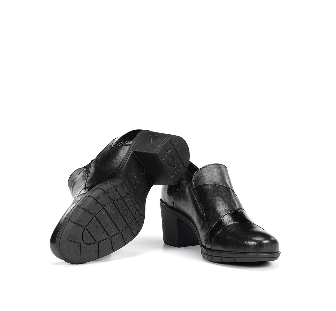 Este zapato presenta un diseño clásico en color negro, ideal para darle un toque sofisticado a tus looks informales. La cremallera lateral no solo le otorga un detalle original, sino que también facilita su colocación, permitiéndote ponértelos y quitártelos de forma rápida y sencilla.