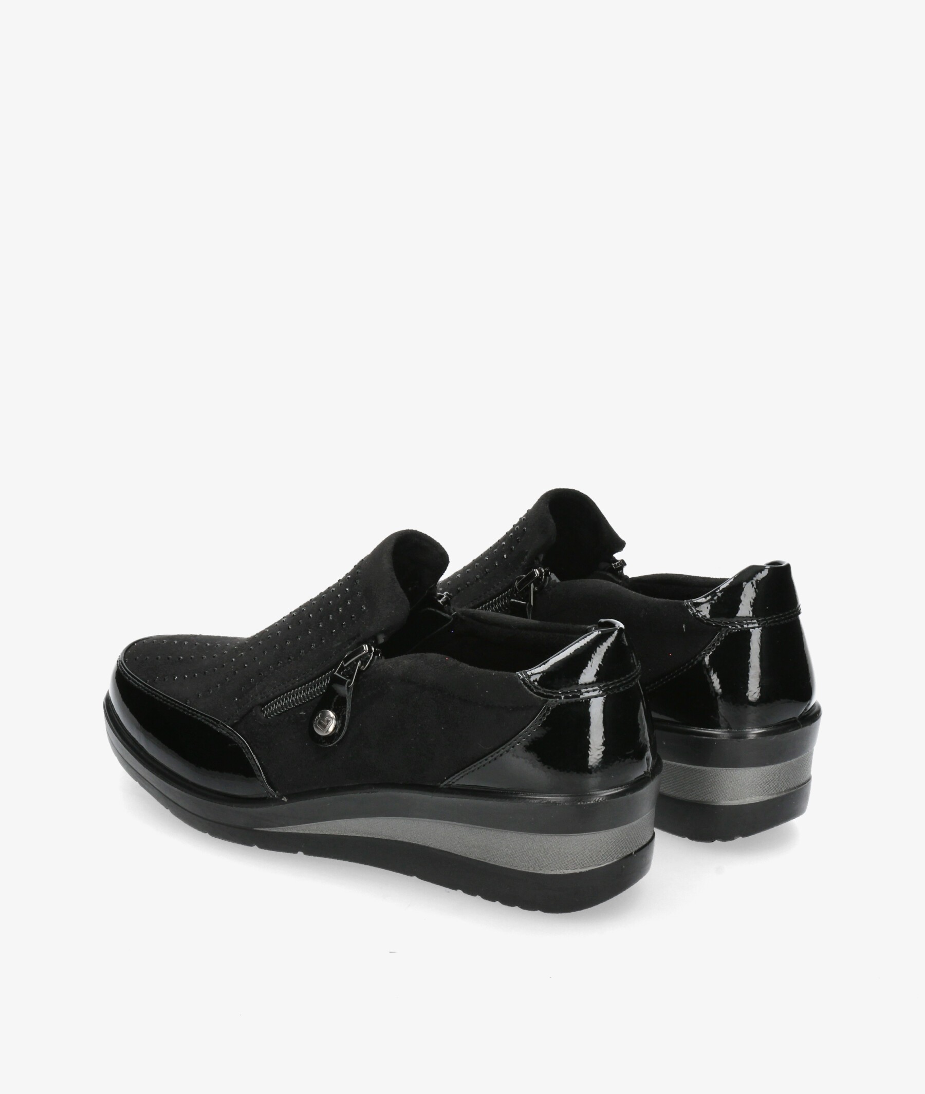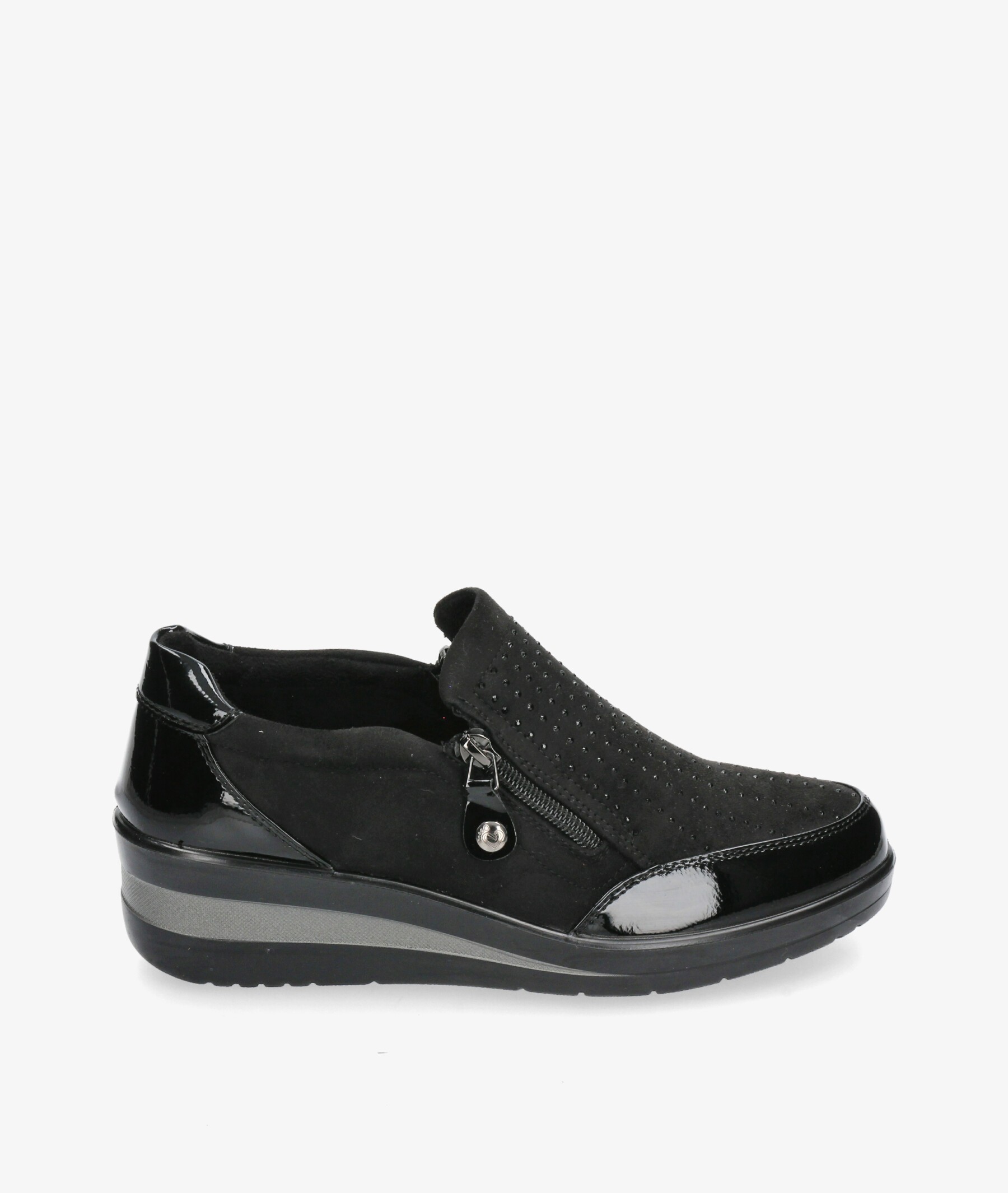 La cuña de estos zapatos proporciona un soporte adicional para tus pies, permitiéndote caminar con total comodidad durante todo el día. La cremallera lateral no solo añade un toque moderno al diseño, sino que también facilita ponerse y quitarse los zapatos de forma rápida y sencilla.