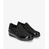 El detalle de strass en la parte delantera agrega un toque de brillo y sofisticación a estos zapatos, haciéndolos ideales para ocasiones especiales o simplemente para darle un toque elegante a tu look diario. La combinación de negro con los detalles brillantes crea un contraste llamativo que seguramente llamará la atención.