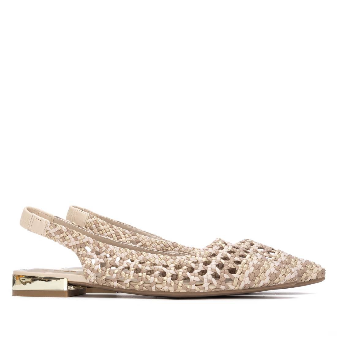 El diseño trenzado en la parte delantera le da un toque único a este salón destalonado, añadiendo un detalle especial que lo diferencia del resto. La combinación de colores neutros hace que sea fácil de combinar con cualquier outfit, ya sea informal o más formal.