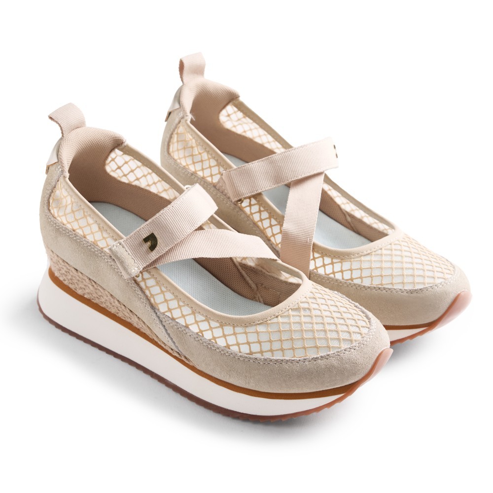 Fabricados con materiales de alta calidad, la parte superior de rejilla beige le da un toque sofisticado a este calzado. La suela flexible proporciona una pisada cómoda y estable, ideal para caminar durante horas sin cansancio.
