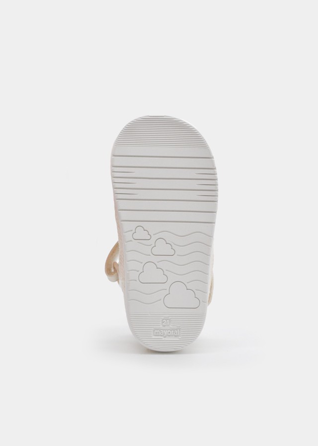 Características:No esperes más y hazte con las alpargatas Barefoot en color crudo de Mayoral para que tu bebé niña dé sus primeros pasos con estilo y confort. ¡Un imprescindible en su armario!